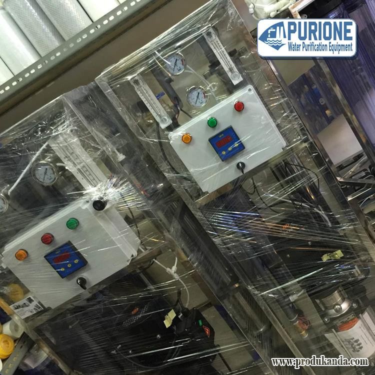 Mesin RO 2000 Gpd adalah metode penyaringan yang menggunakan sistem reverse osmosis untuk kapasitas 2000 Gpd atau 316 liter/jam. Mesin Reverse Osmosis 2000 Gpd ini dirangkai dalam satu frame berbahan material stainless steel sehingga sangat praktis digunakannya tanpa harus mengganggu instalasi lainnya, yang terdiri dari beberapa part yaitu membrane system, sediment filter, pressure pump, dan panel control.